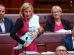 Una senadora australiana amamanta a su hijo durante su discurso en un debate político
